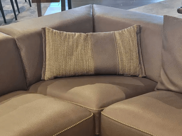 The AA1 Pillow is a lovely accent piece for your sofa, sectional, or armchair. The rectangular silhouette features two contrasting upholsteries on the front for an eye-catching touch. Thanks to the asymmetrical stripe down the front and the intricate piping details, this pillow makes a gorgeous finishing touch on your Gamma sectional. In addition to being aesthetically pleasing, the pillow also offers support for your head and back. Soft cushioned lining provides comfort for hours on end.