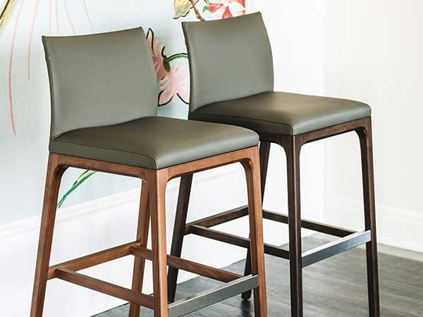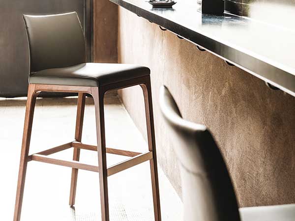 Stool with frame in natural beech (F1), Canaletto walnut (FNC), wenghè (FW), matt white (OP7) or black (OP17) stained beech. Cover in fabric, synthetic nubuck, micro nubuck, soft leather or synthetic leather as per sample card. The cover is not removable.