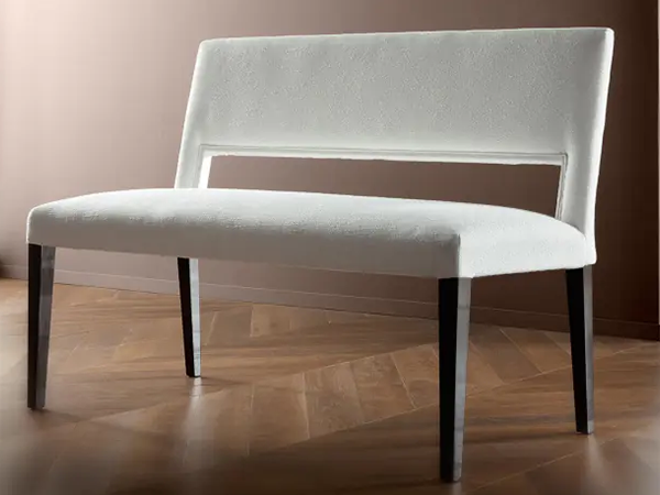 This bench is a fantastic seating option in a foyer or living room. The eye-catching rectangular cut-out offers unparalleled style that makes it an architectural focal point. With cushioning on the seat and back, the bench is very comfortable and great for relaxing. A stark contrast between the upholstery and wood features a vivid juxtaposition for an appealing element.