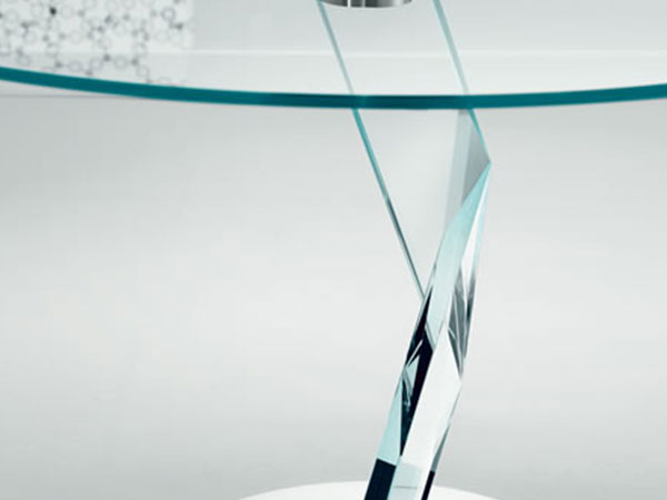 Balance is an extra clear glass dining table. The table top slab creates an elegant contrast with the two sculptured crystal elements that rest on the chrome-plated metal base. Size 200 x 100 x h 75 cm 220 x 100 x h 75 cm 240 x 100 x h 75 cm Ø110 x h 75 cm Ø120 x h 75 cm Ø130 x h 75 cm Ø140 x h 75 cm Thickness 12/15/30 mm Load kg 120/150