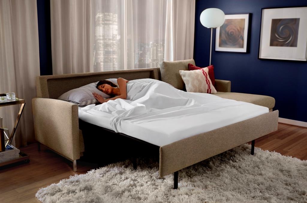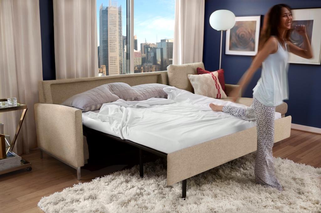 -Space-saving engineering requires less floor space than conventional sleep-sofas