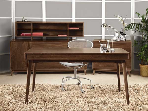 Combining the clean, unadorned lines of the International Modernists with organic and geometric forms, the Catarina Collection is suggestive of the works of America’s Mid-Century Modern designers. The years following WWll were a time of uncertainty but also of great hope and progress. Designs of the period reflected that sense of hope and the promise of an ideal future. In our current period, one finds comfort and nostalgia in Catarina’s retro-modern shapes and sensibilities. Catarina Home Office includes a sleek desk that features a drop-front keyboard tray/drawer. The Catarina Home Office is crafted in solid American black walnut hardwood with natural finish and Made to Order with a variety of knob or pull options. The finish is GREENGUARD Certified for low chemical emissions.