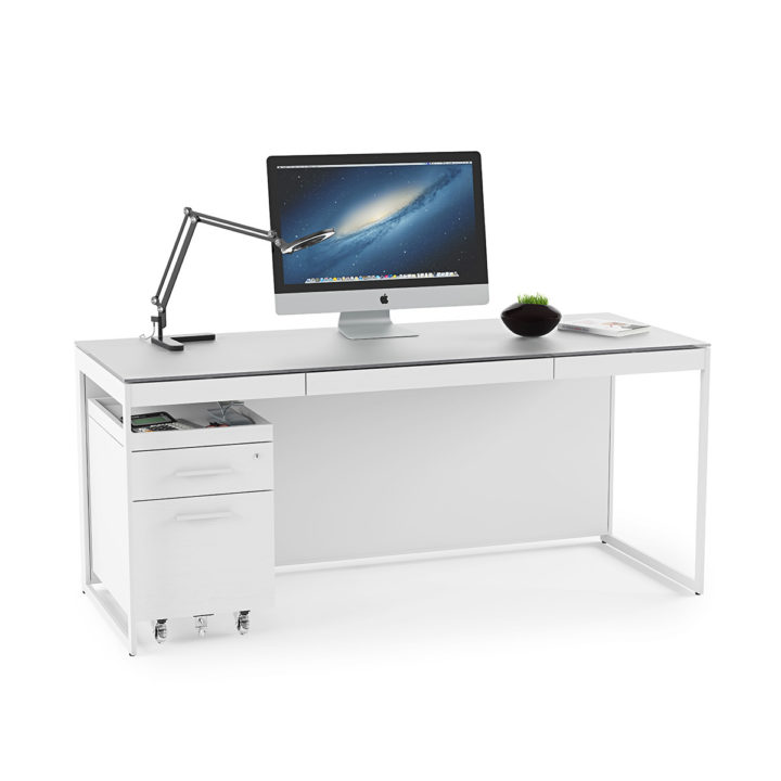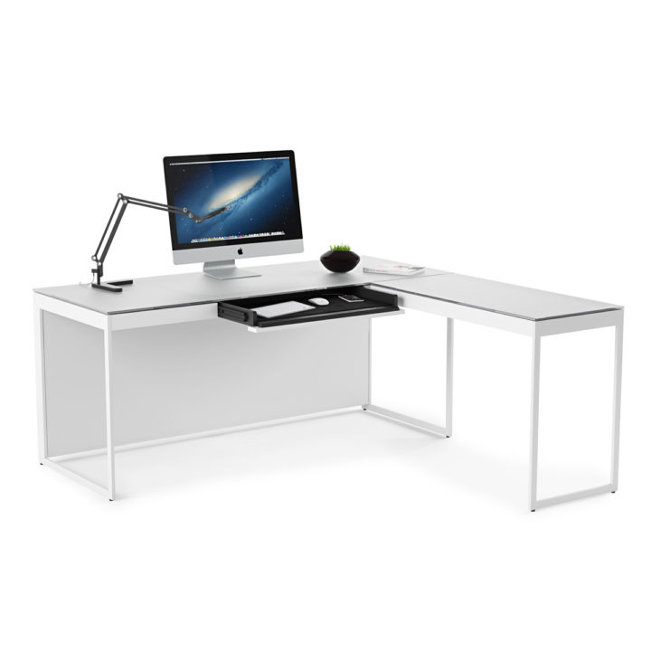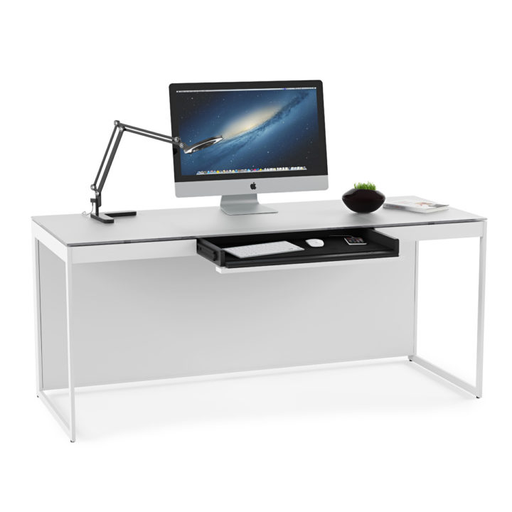 The keystone of a Centro office, the desk includes a flip-down system/keyboard drawer, lined with nonslip material to keep a keyboard and rechargeable items in place.