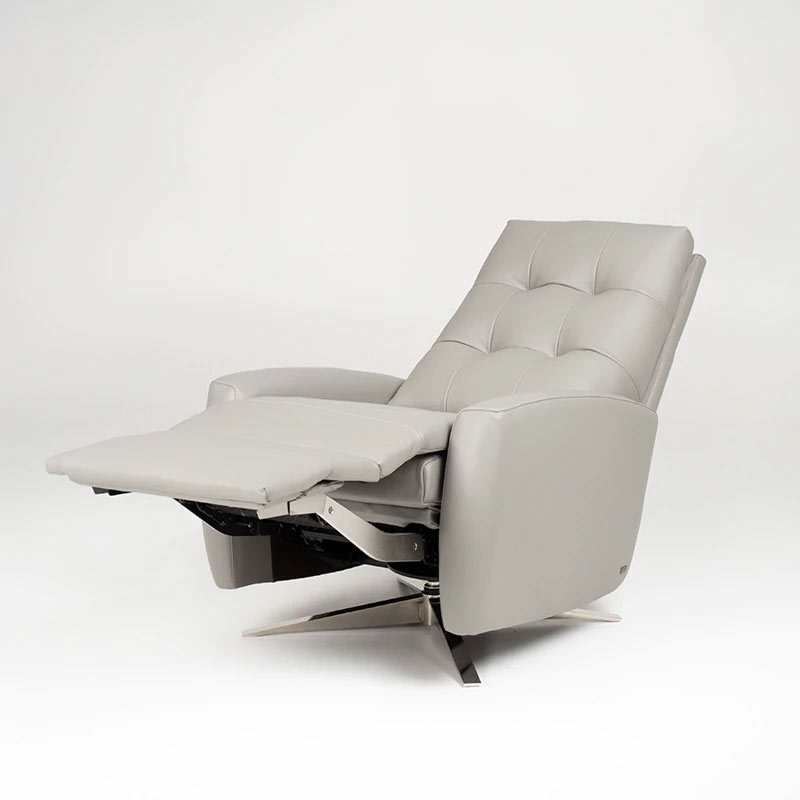 Buttonless tufting and modern shape of this oversized recliner mirror the en vogue automotive trends of the past. Its tapered silhouette spans from front to back and top to bottom for a fast, sleek look. Experience first-class comfort with American Leather’s proprietary seat foam construction. Optional features include the higher 44-inch backrest and an all-new four-star base option to give your recliner chair a mid-century modern edge.