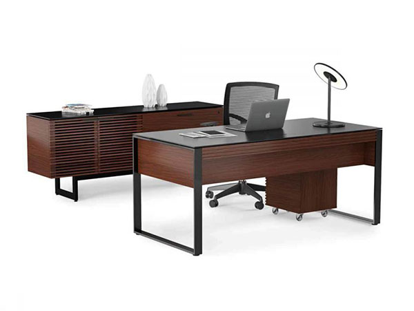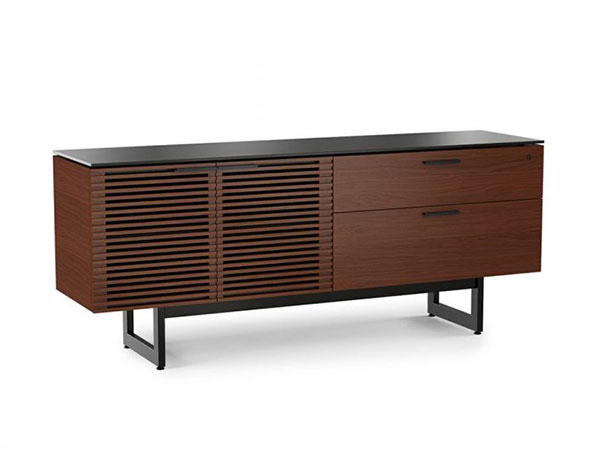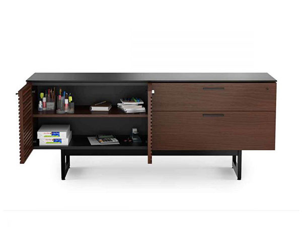 Beautiful on its own or as part of a complete Corridor office, the credenza includes an adjustable storage compartment with louvered doors and locking drawers for supplies and hanging files.