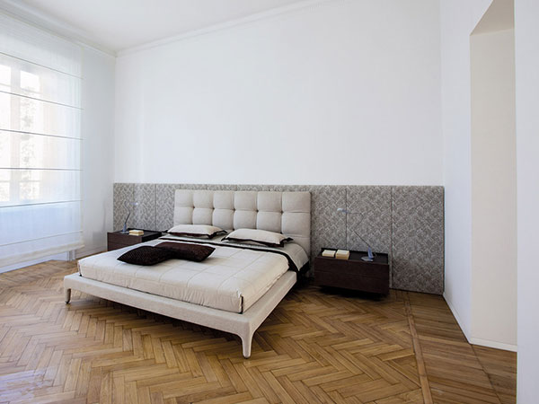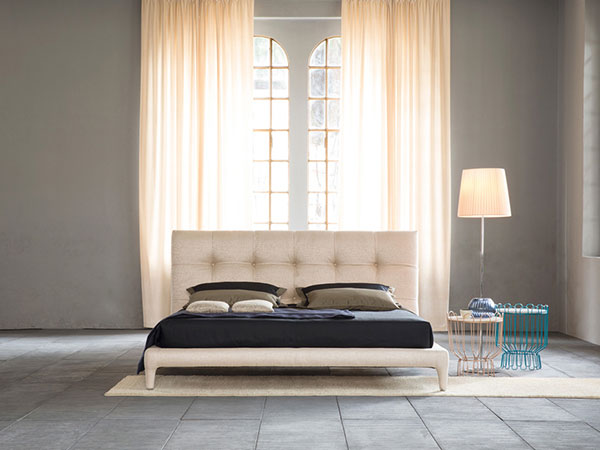 Delta is a double bed with contemporary lines and a button-tufted padded headboard. Every single aspect of the coverings and seams is crafted with the utmost attention to detail, providing a bold statement of absolute sartorial elegance. A bed that encapsulates all the artistry behind the know-how of Italian artisans and weavers.