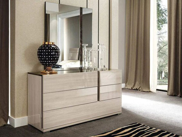 The Doran B Bedroom collection defines luxury and emphasizes modern design with elegant aspects. This set features finishes of Light Elm Veneer & Emperador Stone, which are exquisitely mixed with perfect balance and Chrome accents. All materials are made of strict Italian origin, manufactured in Italy by expert quality craftsmen by Alf Italia.