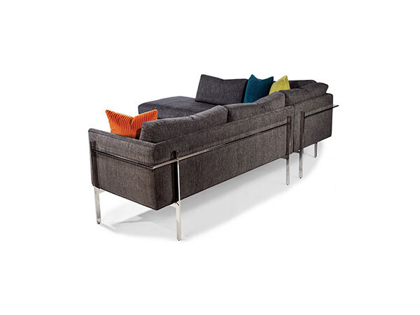 Our Drew S modular sectional sofa is a timeless and glamorous icon of the modern era. Customize your sectional by choosing from our six different modular units to create the perfect configuration. Select from any of our in-house curated fabrics or leathers for upholstery. Base and legs are polished stainless steel in finish. Metal frame also available in powdercoat white as No. 1314-WPC, in black powder coat as No. 1314-BPC or gray powder coat as No. 1314-GPC.