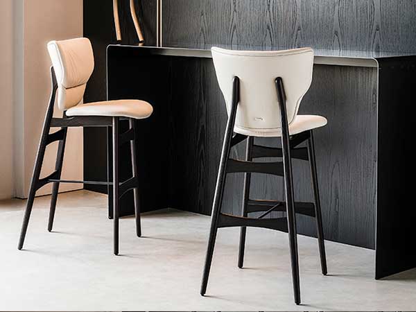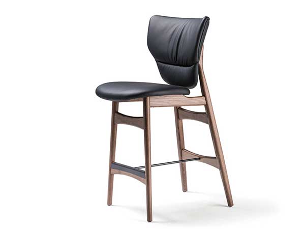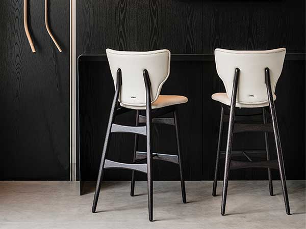 Stool with frame in Canaletto walnut stained ashwood (frNC), burned oak stained ashwood (frRB) or open pore matt white (fr71) or black (fr73) painted ashwood. Seat and back upholstered in fabric, synthetic nubuck, synthetic leather or soft leather as per sample card.
