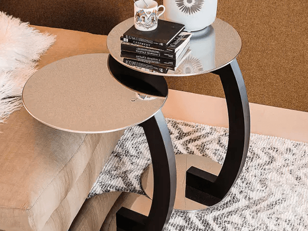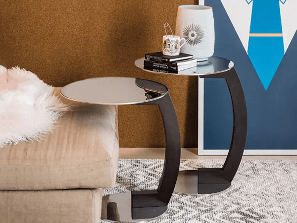 The Enzela side table is agile, luminous, and unobtrusive. The table is designed to slide underneath a couch, chair, or bed to create a makeshift work area or place to eat. With a geometrically inspired silhouette, it adds an edgy style to the room. The contrasting finishes stand out against one another and create a one-of-a-kind look. Thanks to the use of the best quality materials, it is sustainable for years to come.