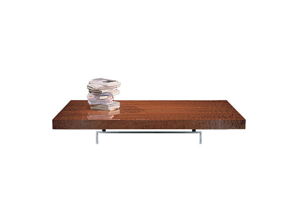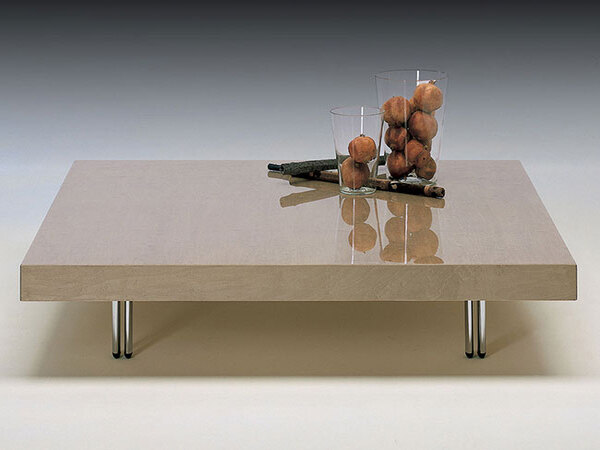 Low table with solid wooden top made out of colors from our collection, metal base.