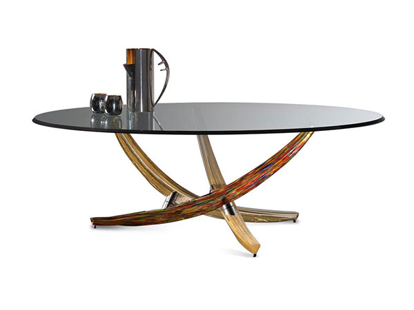 Coffee table with Murano glass base available in the combination of blue, turquoise and white sandblasted or in Rugiada, gold & Murrine or Calcedonio finish.