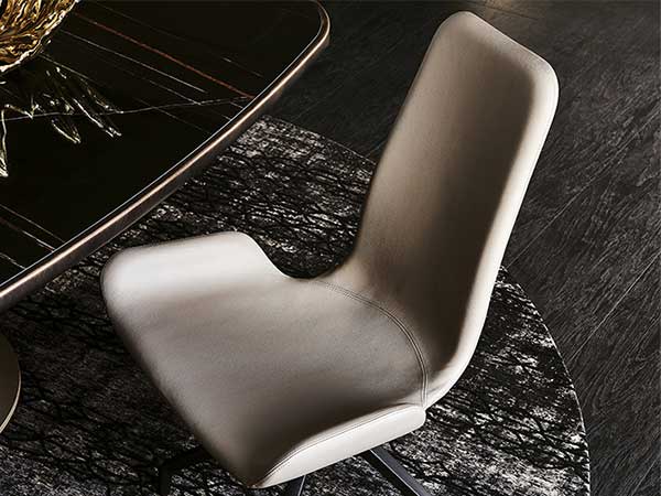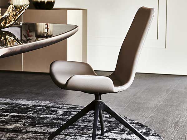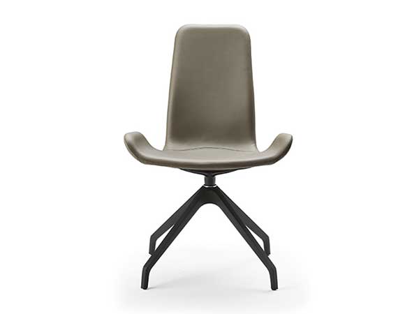 Swiveling chair with 4 spokes base (401-T) in graphite, white or black nylon, or with 4 spokes base (131-T) in titanium (GFM11), graphite (GFM69), white (GFM71) or black (GFM73) embossed lacquered aluminium. Cover in fabric, synthetic nubuck, micro nubuck, synthetic leather or soft leather as per sample card. The cover is not removable.
