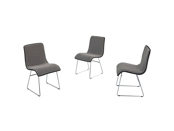 Chair with chromium-plated base and upholstered seat in materials from our collection.