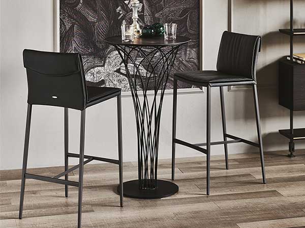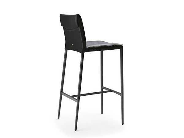 Stool with structure in white (OP71), graphite (OP69) or titanium (GFM11) embossed lacquered steel. Cushions and cover in fabric, synthetic nubuck, micro nubuck, synthetic leather or soft leather as per sample card. The cover is not removable.