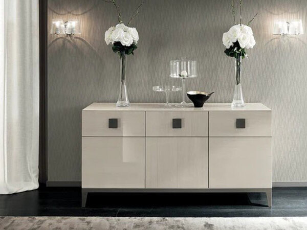 The Lanc Buffet is elegant and emphasizes bold design with modern aspects. This Buffet features a bold Light Koto finish and Chrome accents.