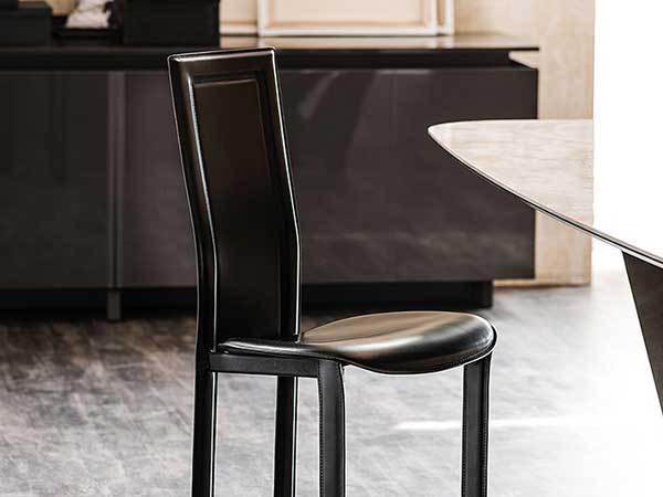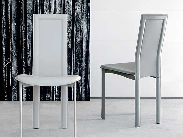 Chair with steel frame, covered in leather as per sample card. Standard stitching.