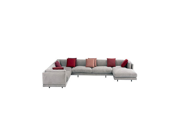 The sofa has a metal frame incorporated within the resilient urethane foam padding, and all-feather cushions for the seating and backrest. The series includes linear and corner sofas with different styles of chaise lounges in a selection of sizes and seating depths offering a range of seating solutions and comfortable options.