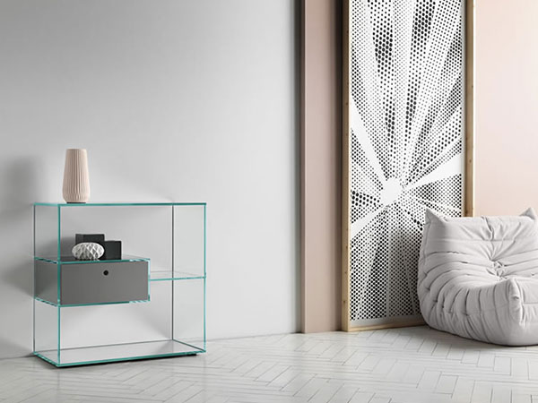 Bookcase or showcase suitable for any environment, available in different sizes. Wooden drawers mat white or RAL lacquered.