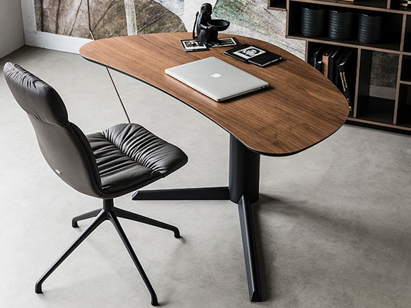 Desk with base in graphite (GFM69) or black (GFM73) embossed lacquered steel. Top in Canaletto walnut (NC) or burned oak (RB).