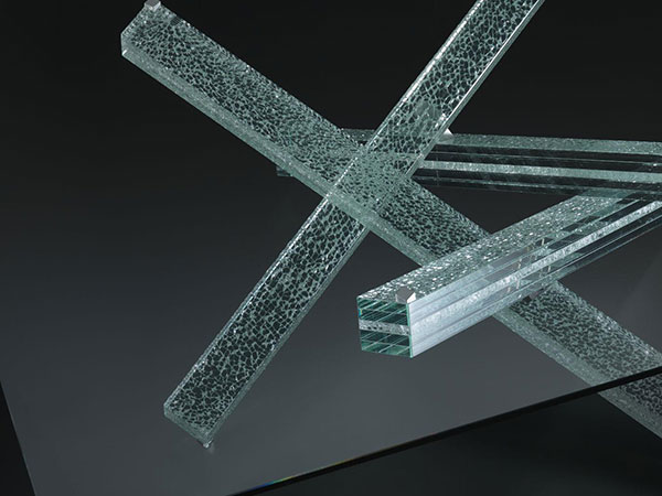 Coffee table with base in extraclear crackled glass. Glass top 12 mm thick.