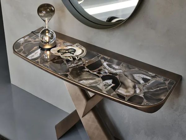 The Minal K Premium console table is a lovely statement piece in a contemporary home. The geometrically inspired base features an X-shape and has sculptural elements for an artistic touch. With multi-dimensional aspects, it makes the table stand out in style. There is ample space on top to show off beautiful pieces of modern decor.