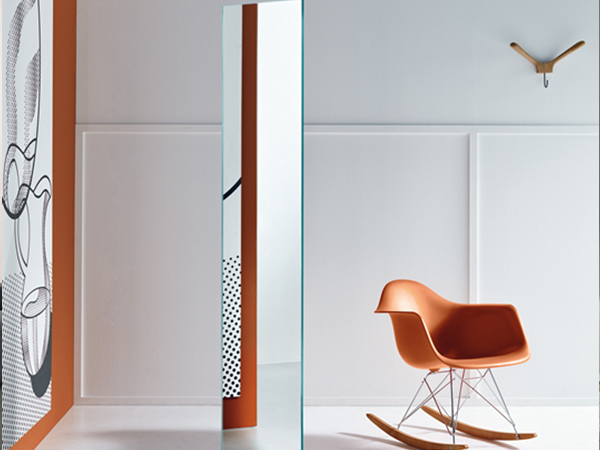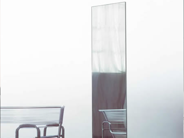 A double-sided mirror that turns as required, thanks to the patented revolving base.