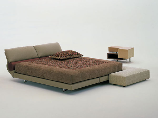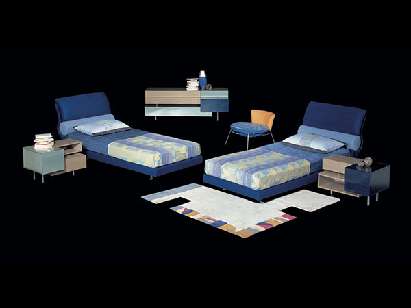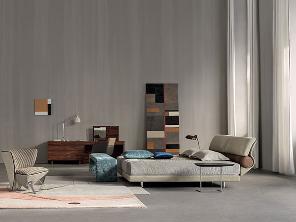 A long and soft roll with cushions on top make up the soft and inclined backrest of the bed’s box spring. It is all in a containment and support structure that envelops with a swollen curve and supports with supple momentum.
