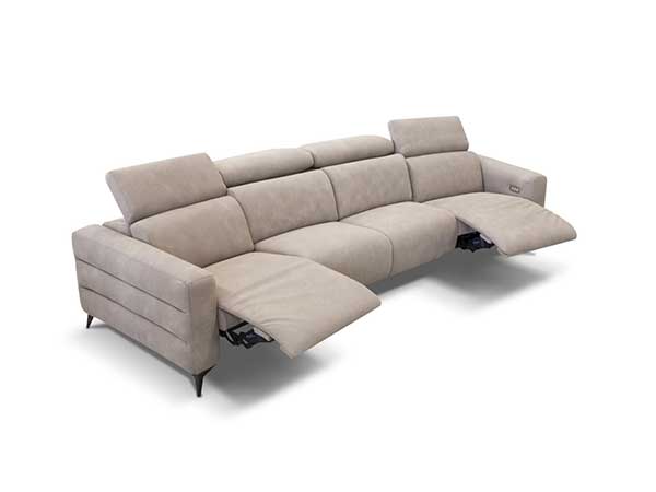 Olimpus is a power motion with a sophisticated thin arm that easily adapts to all living spaces. Olimpus is equipped with a state of the art power mechanism and touchpad that individually controls headrest and footrest allowing maximum comfort and support for your head, back and legs even for the tallest people. This model is available with two seat width options and it’s modularity allows to make any size sofa or sectional.