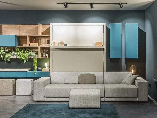 Oslo is a sofa composed of a large section with full-size seat pad cushion and armrest and another armchair section with armrest, integrated to the double-function transforming double bed system, with tilting opening and with CF97 slatted bed base.‎