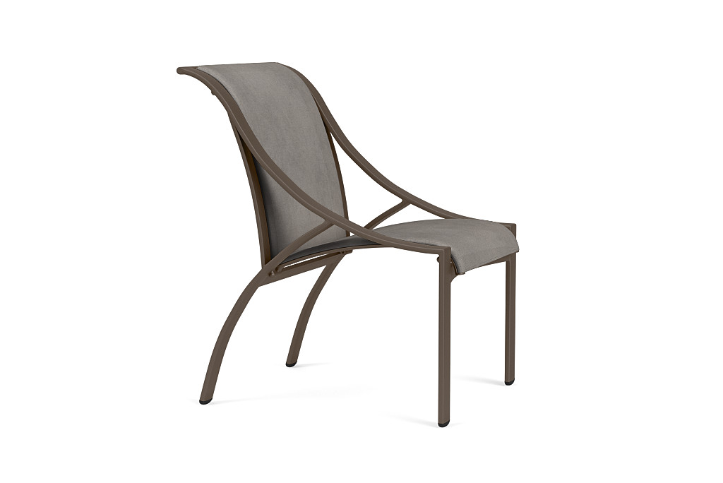 The Pasadena Side Chair showcases gracefully curved cast aluminum arms and legs that merge into an elegant fork. This collection by Brown Jordan highlights detailed hand finishing that is unparalleled in the industry with a plethora of Versatex mesh fabrics are available to choose from.