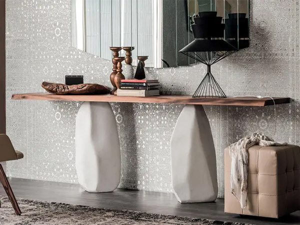 The Paranui console showcases a sophisticated contemporary design with historically inspired intricacies. The base resembles two boulders to bring a touch of nature inside. With ample space on top, it allows for countless decor possibilities to elevate the room’s style. Thanks to the use of only the best materials, it will be a fixture in a modern home for years and years.