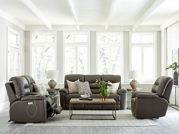 This stunning motion collection is sure to draw attention, but lush, sophisticated aesthetics are only the beginning of the Ran experience. Blown-fiber backs and high-density foam seats combine with pillow-top arms for unparalleled comfort that you can fully sink into. A triple-bolstered back brings a structured drama to the look, accented by double topstitch details on the back and seat. Power headrest, recline, and lumbar offer infinite opportunities for creating the perfect position, while wall-hugger technology ensures a full recline with as little as 4″ of wall clearance. A full pad-over chaise leaves no part of your leg unsupported and creates a streamlined look, with a higher chair back and extended footrest that makes this collection a fitting choice for taller customers. Every smooth movement is activated with a brushed-metal switch that features integrated USB charging. An available console loveseat reveals deep storage, cupholders, more USB charging, and a grommet with optional add-ons including tablet stands, tables and LED flex lights. Bringing a more modern look to the comfort and convenience of motion furnishings, the Ran will soon become a cherished place to recharge at the end of a long week. Only available at select retailers.