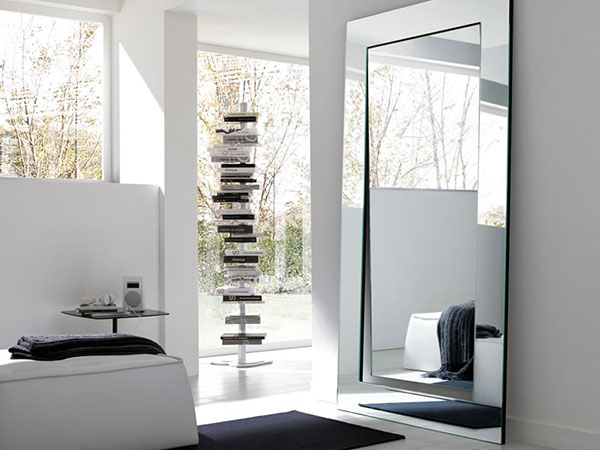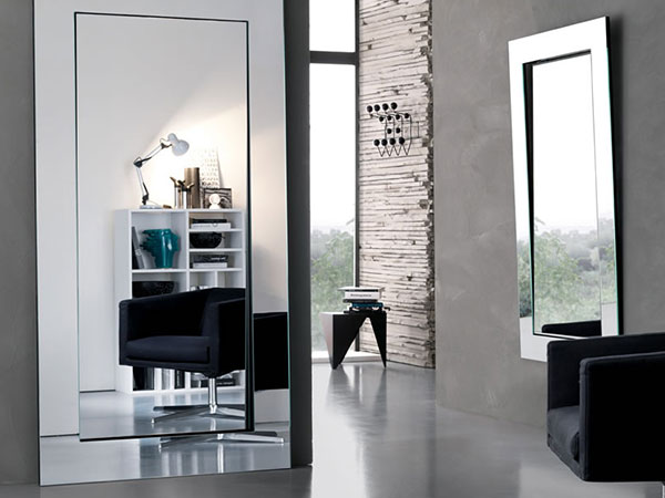 Floor mirror. Made out of an only panel, the frame sticks out from the lower part.