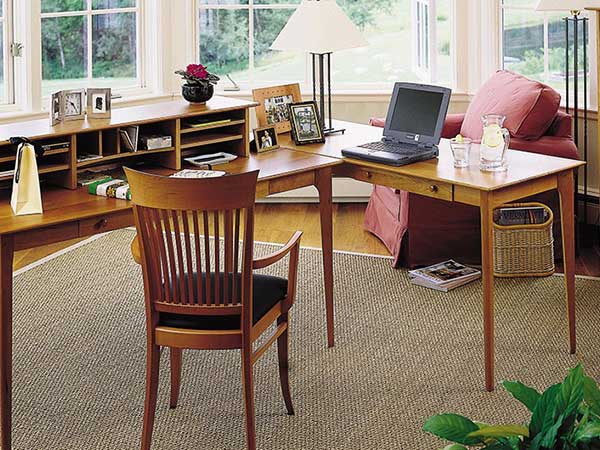 The Sabah Home Office exhibits the clean lines and balanced proportions of its Shaker influence. The Sabah Home Office collection includes a desk with a drop down keyboard tray/drawer. The Sabah Home Office is crafted in solid cherry hardwood and Made to Order in several finishes with a variety of knob options. The finish is GREENGUARD Certified for low chemical emissions.