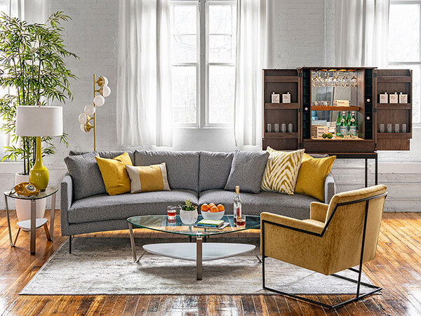 The Sicce Sectional is a contemporary wonder by Thayer Coggin. Curved Sicce sections can be mixed and matched into an array of configurations to match any space. We’re offering the Sicce online as a curved sectional with dark bronze legs. Accent pillows not included.