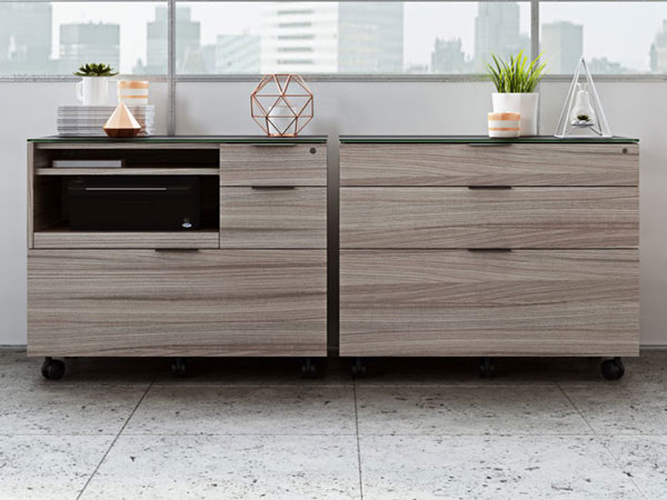 Lateral filing cabinet that includes three locking drawers with plenty of file and accessory storage.