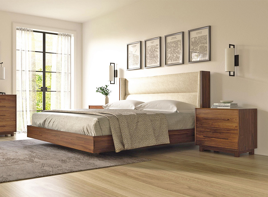 With its plush upholstered headboard and soft contemporary design, the Slide Bedroom will bring comfort, class and style to your home. For a bit of soft, nighttime illumination underbed LED lighting is now available on the Slide floating bed. Lights are zoned left and right with independent control for each sleeper. The Slide floating bed is configured for a mattress only and the Slide bed with legs can be figured for mattress only or mattress and box spring. Queen: 62″ W x 88 3/4″ L x 48″ H King:78″ W x 88 3/4″ L x 48″ H Cal King:74″ W x 92 3/4″ L x 48″ H
