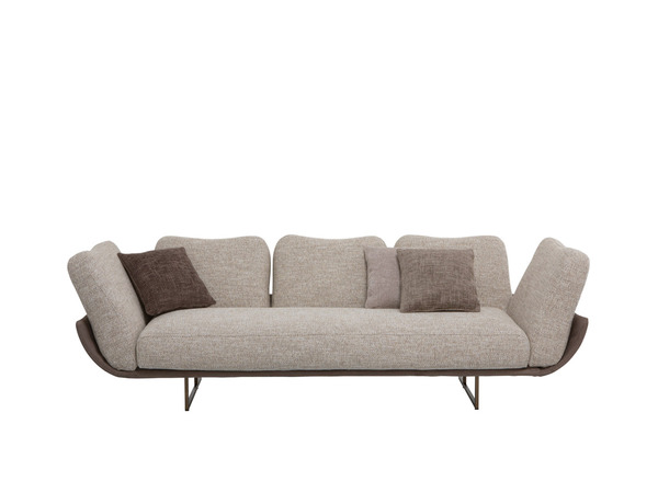 A free-spirited sofa defined by an upholstered metal tray that forms the sides and back and envelops soft, misshapen cushions. A free spirit with a dual soul: the more linear version is perfect for straight-line compositions, while the more sinuous design creates curvilinear compositions that grow into the space, ensuring a style statement in any interior.