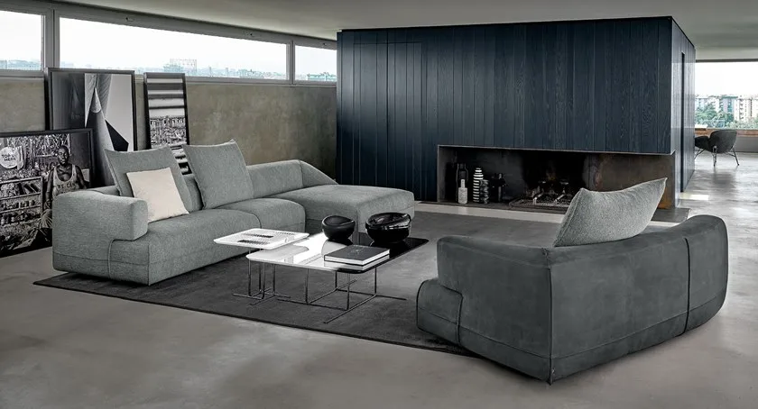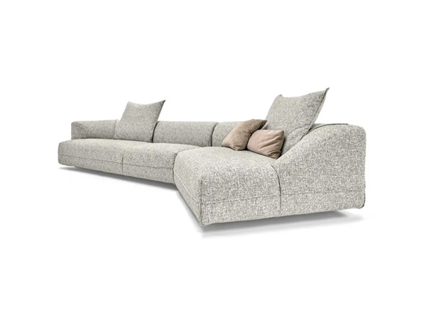 Star Moon is a sectional fabric sofa. Expanded polyurethane frame and seat upholstery. Seat and cushion upholstery are covered by with synthetic lining (230g seat, 380g back cushion). Wood structure and plastic feet, 5 or 8 cm high.