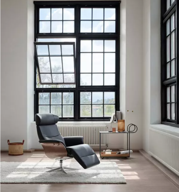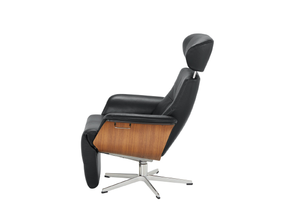 Swivel chair with return memory in molded aluminum, black coated molded aluminum, swivel Quattro aluminum or wood/molded aluminum. The wood options are in oak (lacquered), oak (untreated), oak (black stain lacquered) or walnut (lacquered). The chair is possible to get in an extra high seat version (+3,5cm).