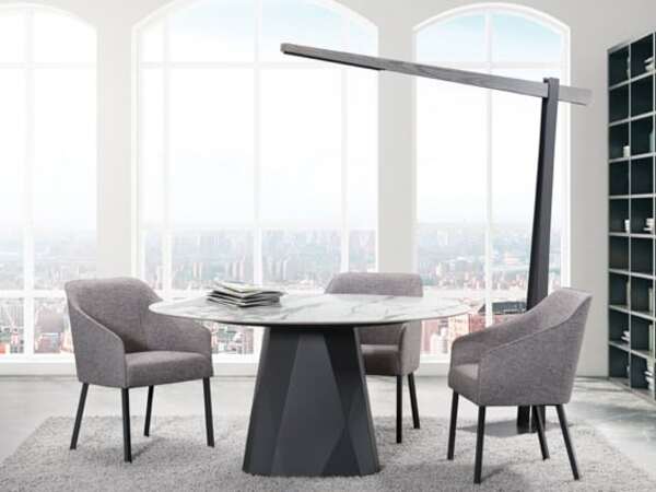 • 6 mm round porcelain top laminated on a lacquered MDF board.