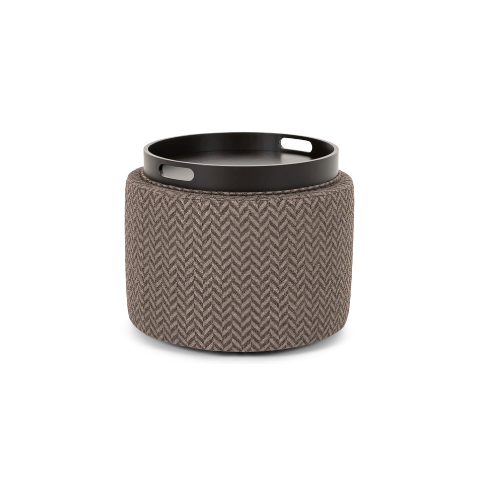 Relax and stretch your feet on an expertly upholstered ottoman top or flip to the built-in tray to create an instant side table. Hidden rolling casters allow the transformation to happen at any place in the room. The ever-ready hidden tray is available in acorn, espresso or walnut finish.