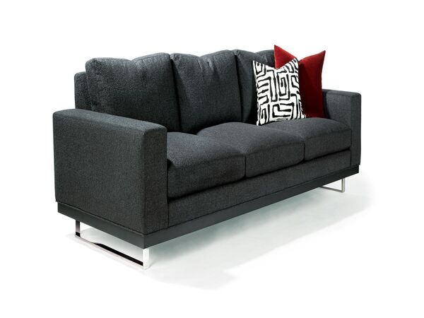 Our Wired S sofa features an architectural solid maple base paired with recessed metal sled legs. Choose any TC wood finish on maple for base. Metal sled legs available in polished stainless or brushed bronze finish. Select any of our in-house curated fabrics or leathers or provide COM for upholstery.