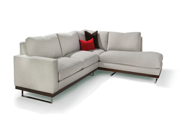 Our Wired sectionals feature an architectural, solid maple base paired with recessed metal sled legs. Customize your sectional by choosing from our fourteen, distinct modular units to create the perfect configuration. For upholstery select from any of our in-house curated fabrics and leathers. Choose any TC wood finish on maple for base. Metal sled legs available in polished stainless or brushed bronze finish.