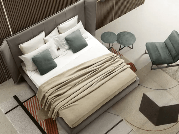 By representing visual balance through its minimal silhouette, the Wise night bed is an ideal place to relax. It features plenty of convenient features that set it apart from the rest, such as optional under-the-bed storage. This gorgeous product is available in full, queen, king, and California king sizes. The tall and wide headboard has the capacity to fold forward at the far ends delineating a cocoon-like feel.